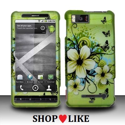 Rubberized Hawaiian Flower Hard Snap On Case Cover Faceplate Protector for Motorola DROID X MB810 & Droid X2 MB870 Verizon + Screen Protector Film + Free Cellphone Bag Review
